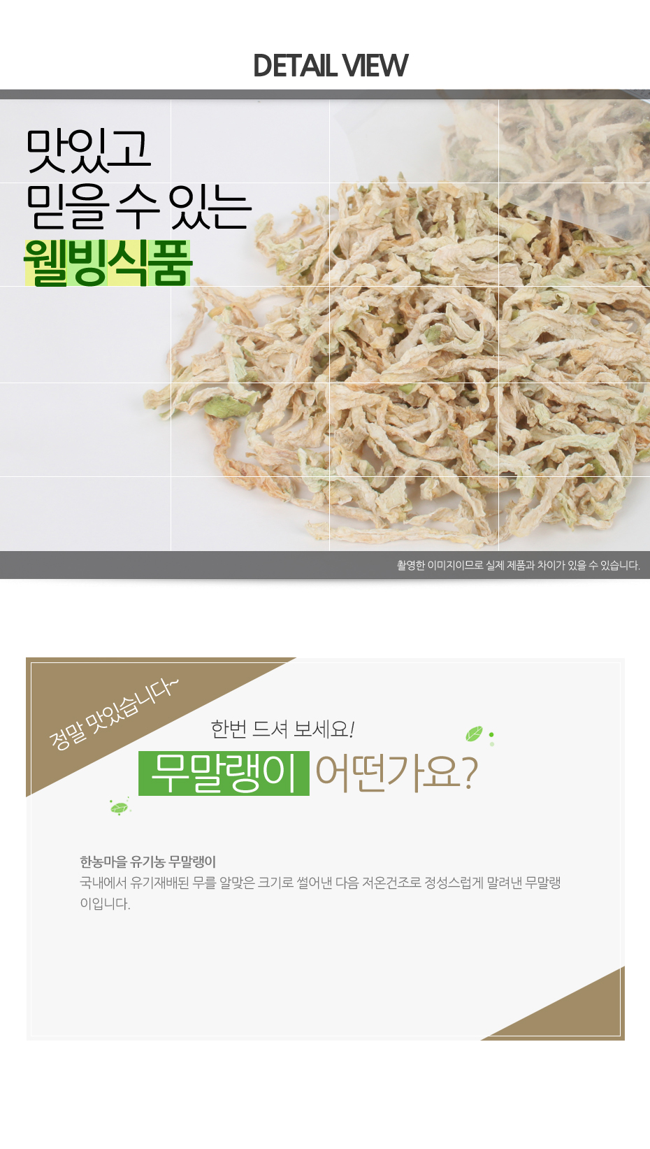 | 상품구성 | 유기농 무말랭이 100% (국내산) |
